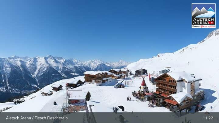 Webcam Aletsch Arena: Blick auf die Fiescheralp, 2,220 m