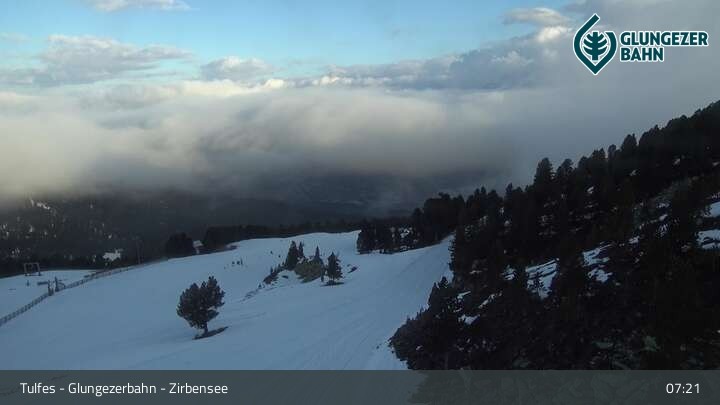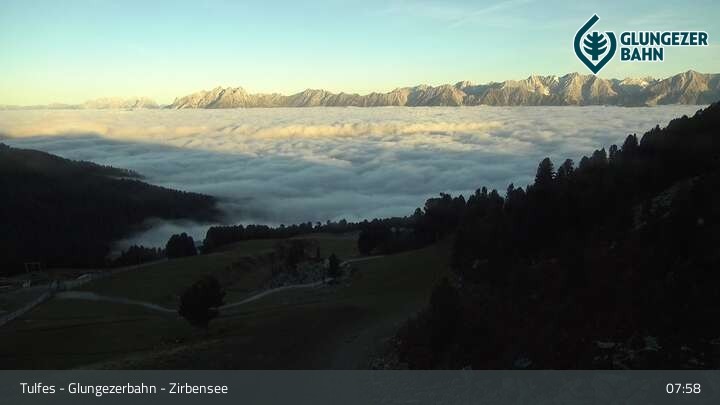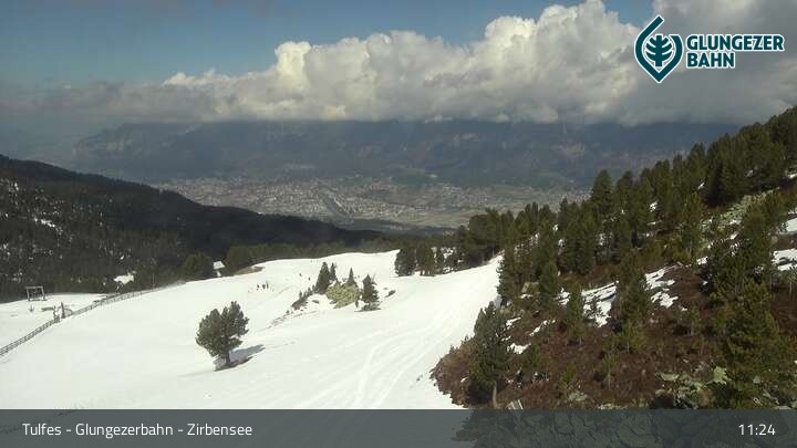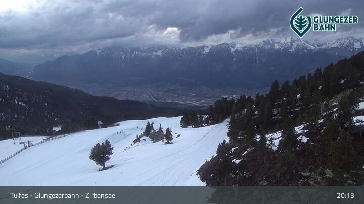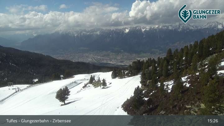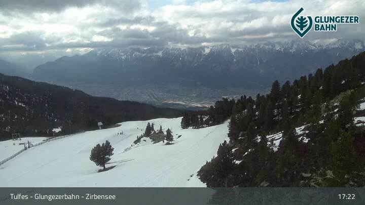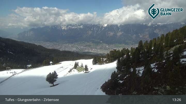 Die Webcam ermöglicht einen tollen Panoramablick auf die Landschaft am Glungezer. Das Bild wird unweit des Zirbensees aufgenommen.