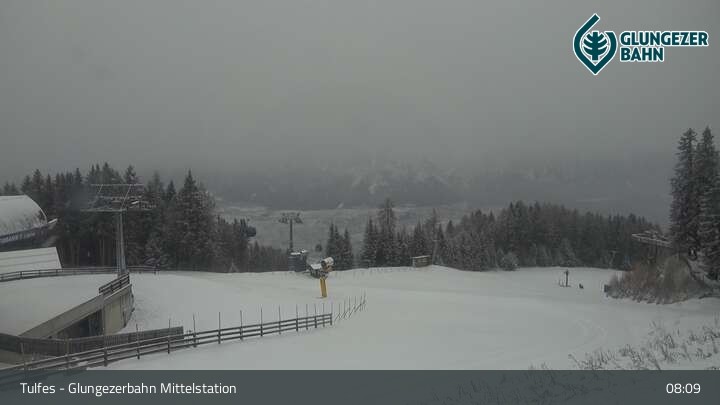 Die Webcam ist an der Mittelstation des Glungezer positioniert und zeigt einen tollen Panoramablick auf das Ski- und Wandergebiet in Tulfes.