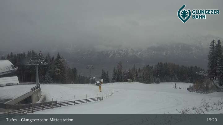 Webcam Tulfes: Blick von der Mittelstation am Glungezer, 1,553 m
