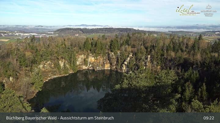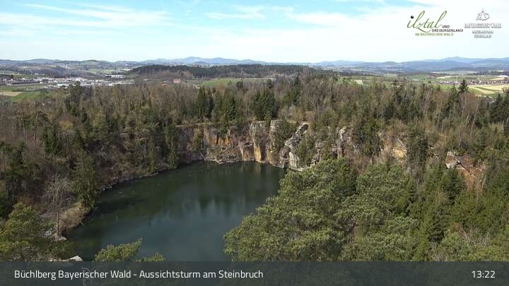 Webcam Büchlberg und Steinbruchsee vom Aussichtsturm, 527 m