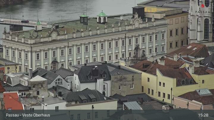 Die Webcam zeigt einen tollen Panoramablick von der Veste Oberhaus auf die Donau und die Altstadt von Passau. Neber der herrschaftlichen Burgfassade sieht man sehr gut die Landzunge zwischen Donau und Inn, auf der die Altstadt mit ihren denkmalgeschützten Häusern liegt. Gut zu erkennen sind unter anderem die Ortspitze am Zusammenfluss der drei Flüsse, das an der Donau liegende Rathaus, der weiße Dom St. Stephan und das erhöhte Kloster Mariahilf in der Innstadt.