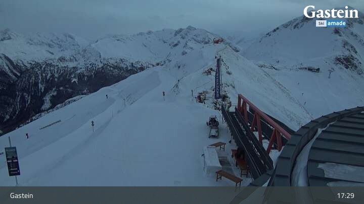 Die Webcam blickt von der Südseite der Bergstation am Stubnerkogel auf die umliegende Bergwelt von Bad Gastein.