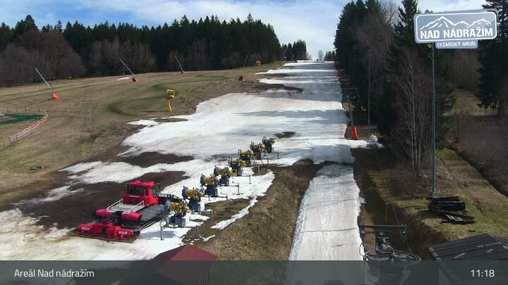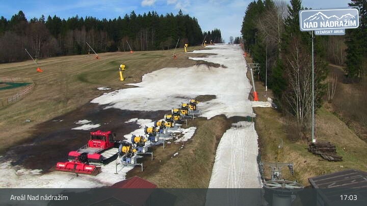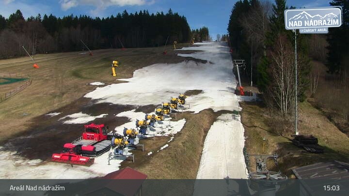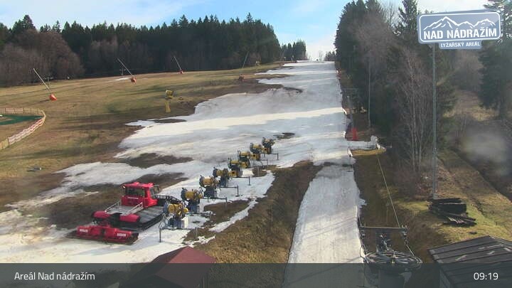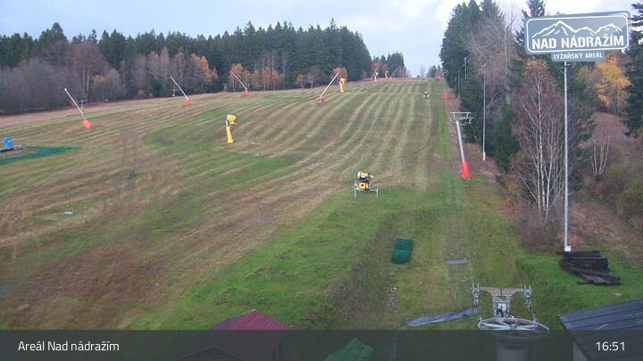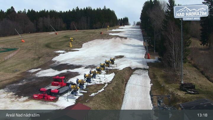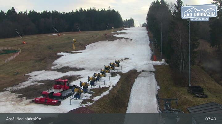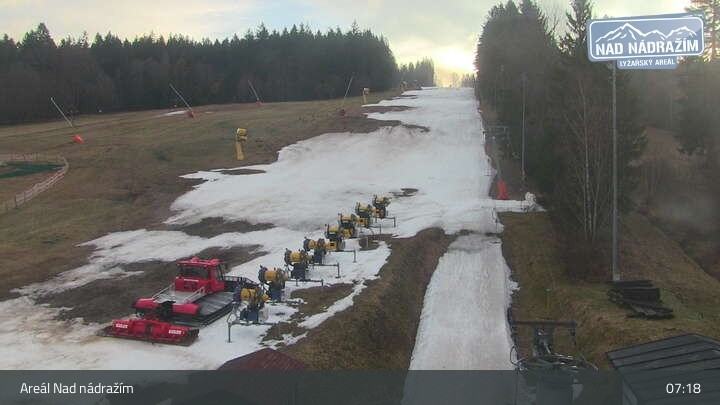 Die Webcam zeigt die Skilifte im Areal Nad nádražím bei Železná Ruda nahe der deutschen Grenze.