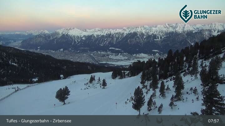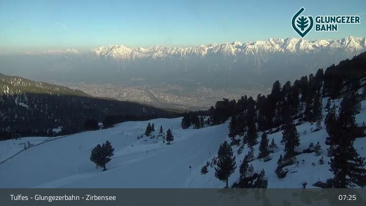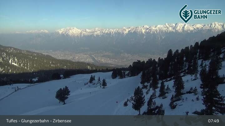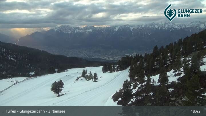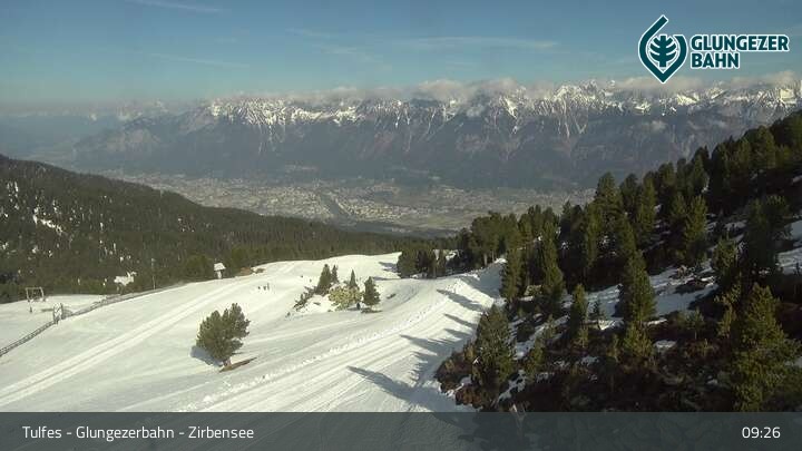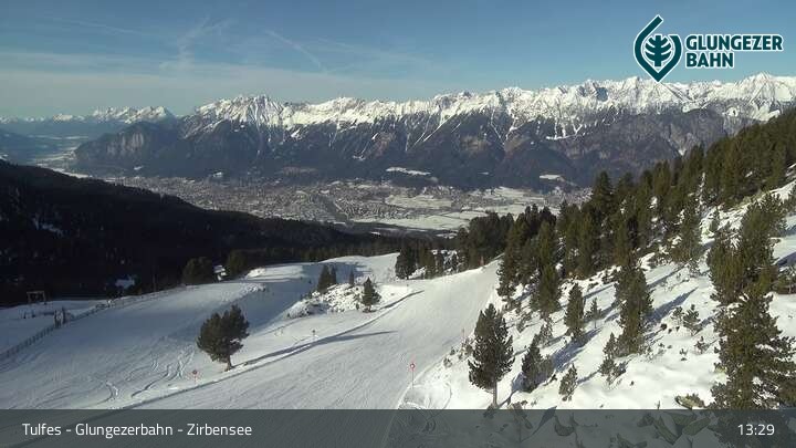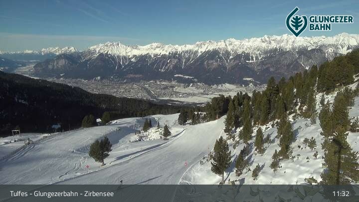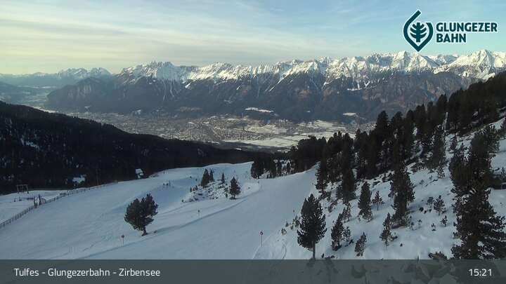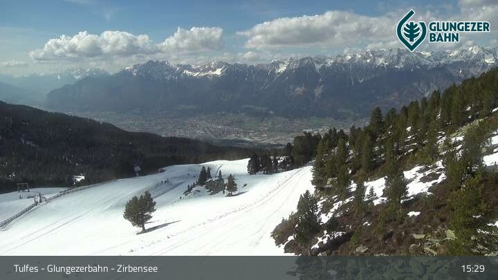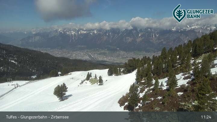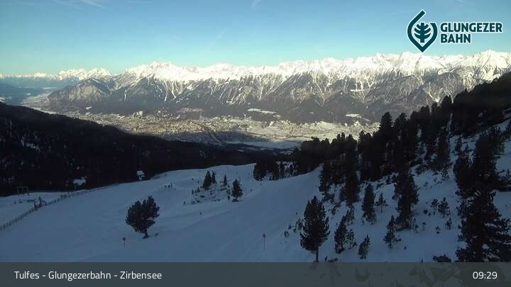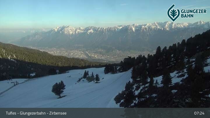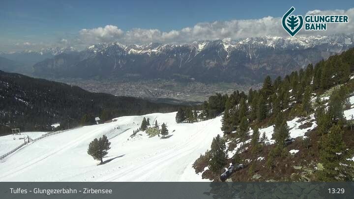 Die Webcam ermöglicht einen tollen Panoramablick auf die Landschaft am Glungezer. Das Bild wird unweit des Zirbensees aufgenommen.