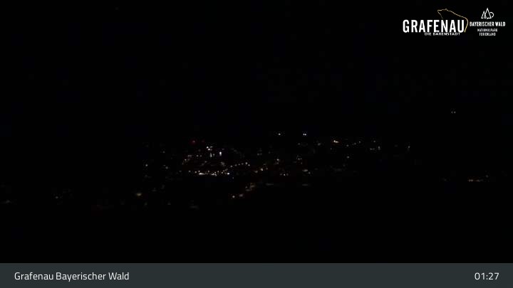 Genieße den Ausblick auf den Luftkurort Grafenau im Bayerischen Wald. Die Kamera befindet sich südlich der Stadt und blickt nach Norden über die Stadt zum Nationalpark Bayerischer Wald.