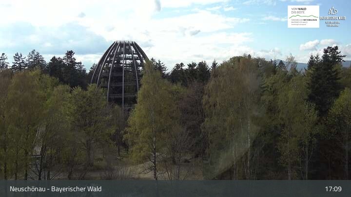 Die Kamera befindet sich in Neuschönau auf dem Dach des Besucherzentrums Hans-Eisenmann-Haus im Nationalparkzentrum Lusen im Bayerischen Wald. Zu sehen ist auch der über 40 Meter hohe Turm des Baumwipfelpfads.