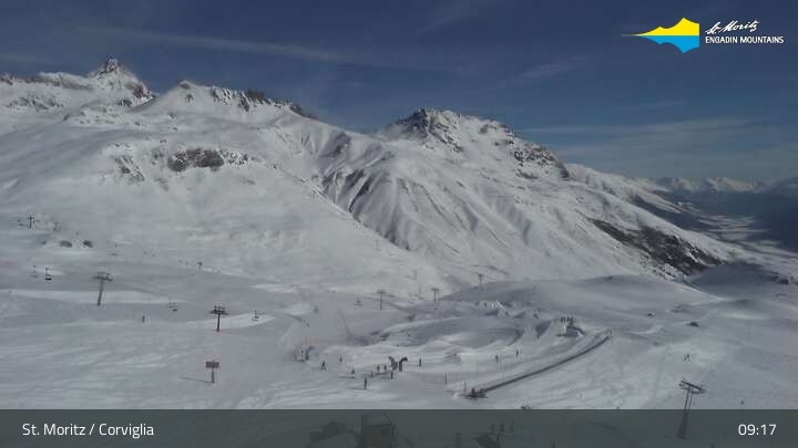 Hier siehts du die Pisten unterhalb der Chantrella Corviglia Bahn