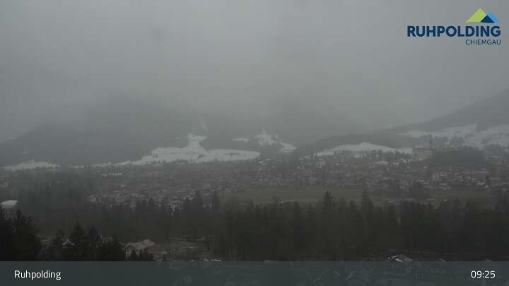 Webcam Panorama Ruhpolding: Ort und Berge, 696 m