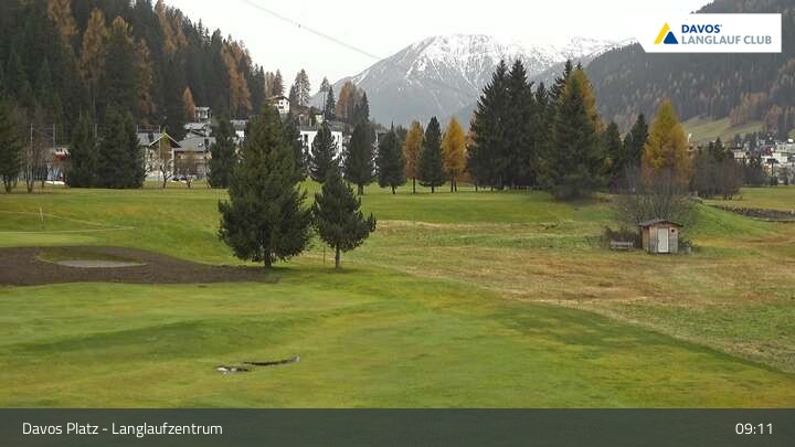 Blick auf den Golfplatz in Davos. Im Winter befindet sicher hier das Langlaufzentrum.