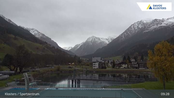 Hier siehst du das Sportzentrum und das Freibad in Klosters