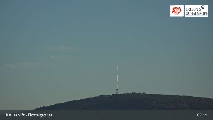 Ausblick von den Klausenliften in Mehlmeisel im Fichtelgebirge. Die Kamera zeigt u.a. den Schneeberg und den Ochsenkopf.