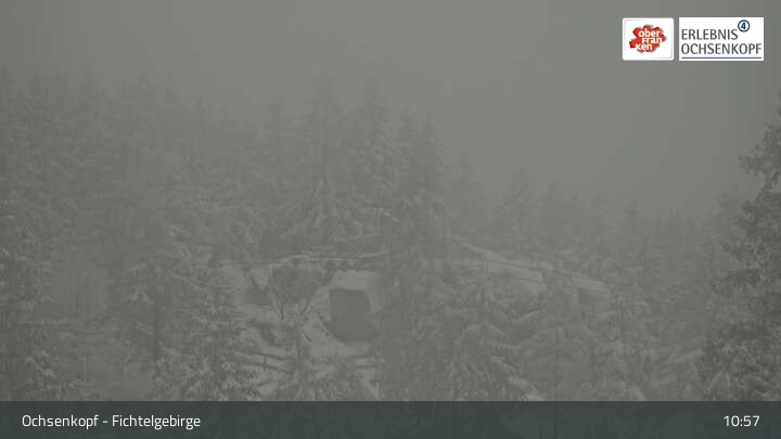 Die Kamera befindet sich am Asenturm am Restaurant auf dem Gipfel des Ochsenkopf im Fichtelgebirge.
