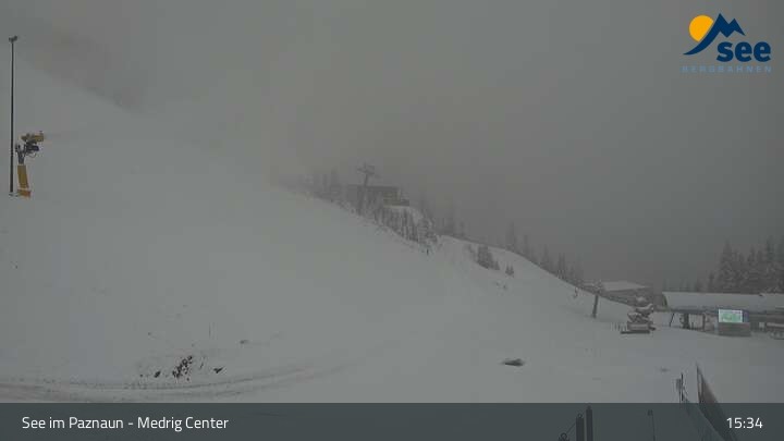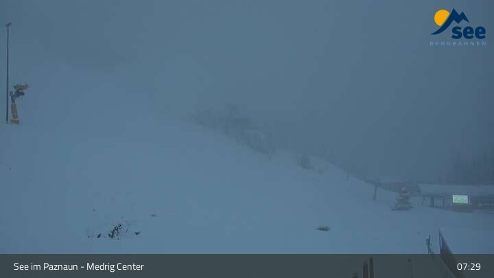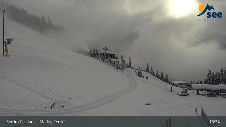 Die Webcam in See eröffnet den Blick vom Medrig Center auf rund 1.800 Metern auf die Bergstation der Medrigjoch-Gondelbahn.