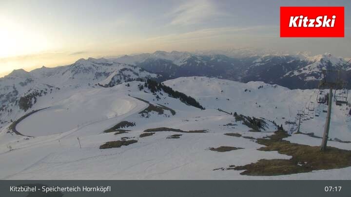 Die Webcam befindet sich auf rund 1.700 m Höhe und blickt auf den Speicherteich Hornköpfl sowie die Kitzbüheler Alpenwelt.