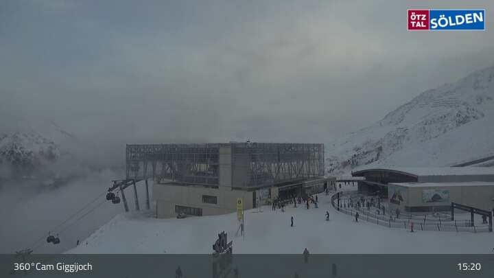 Blick vom Giggijoch auf die Bergbahnen sowie die umliegendeAlpenwelt von Sölden.
