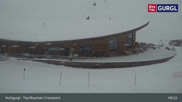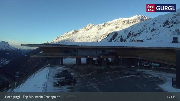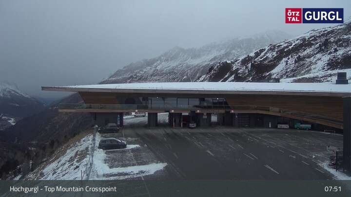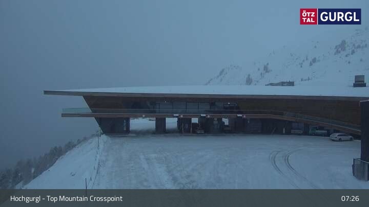 Hier blickst du auf den Top Mountain Crosspoint bei Hochgurgl im Tiroler Ötztal. Es handelt sich dabei um die Mautstation zur Timmelsjocher Hochalpenstraße. In dem Gebäude befindet sich unter anderem auch das höchste Motorradmuseum der Welt.