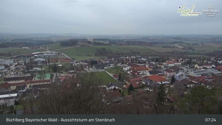 Webcam Büchlberg und Steinbruchsee vom Aussichtsturm, 527 m
