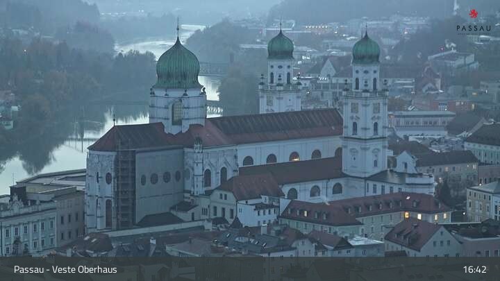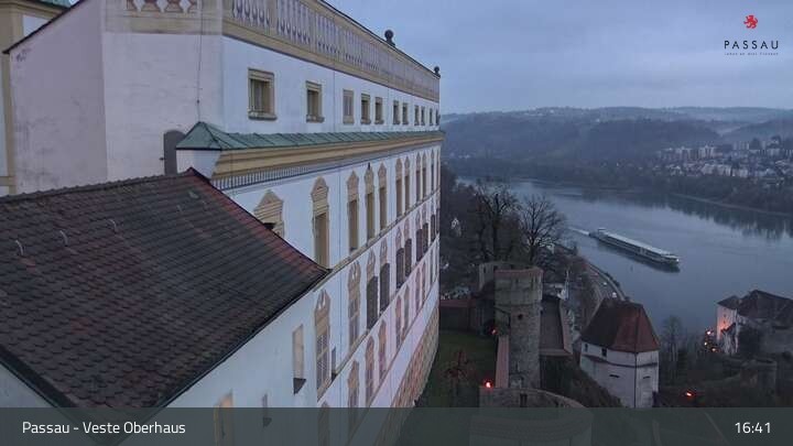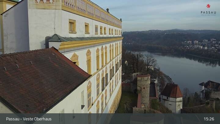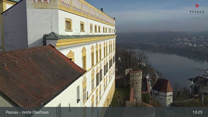 Die Webcam zeigt einen tollen Panoramablick von der Veste Oberhaus auf die Donau und die Altstadt von Passau. Neber der herrschaftlichen Burgfassade sieht man sehr gut die Landzunge zwischen Donau und Inn, auf der die Altstadt mit ihren denkmalgeschützten Häusern liegt. Gut zu erkennen sind unter anderem die Ortspitze am Zusammenfluss der drei Flüsse, das an der Donau liegende Rathaus, der weiße Dom St. Stephan und das erhöhte Kloster Mariahilf in der Innstadt.