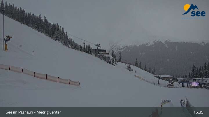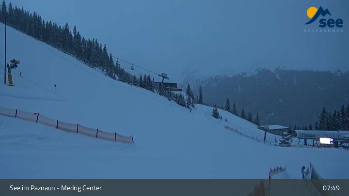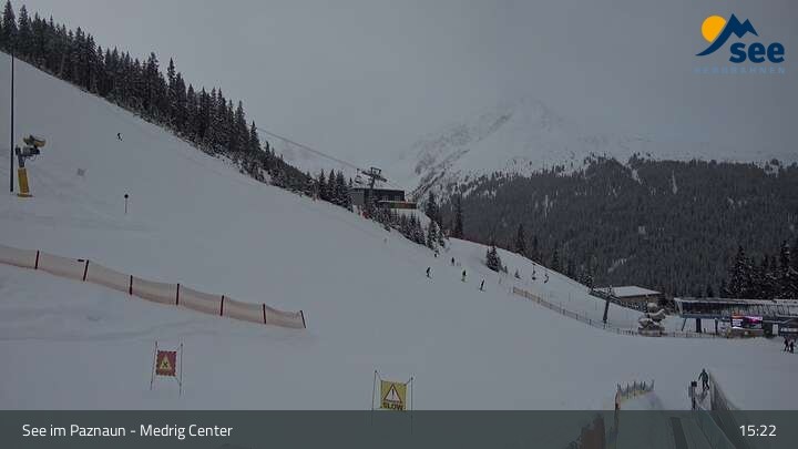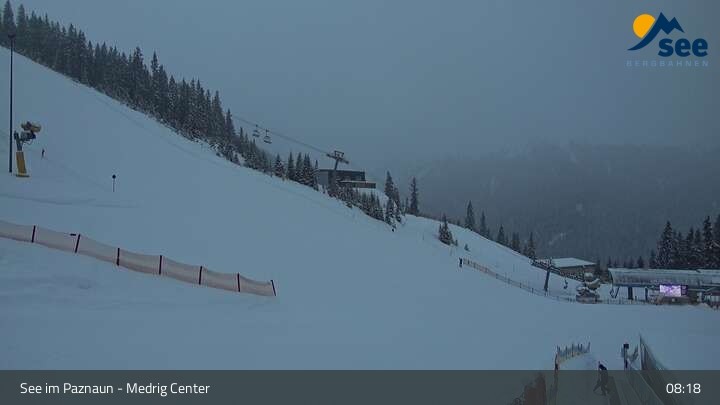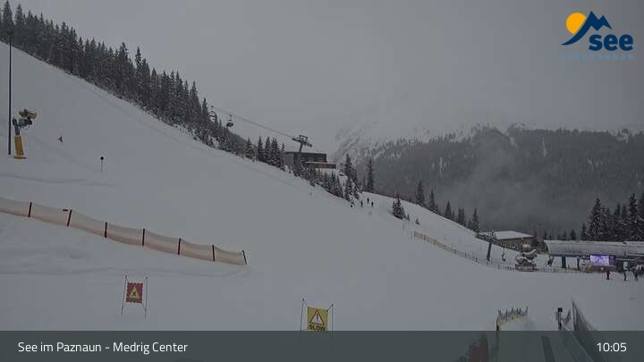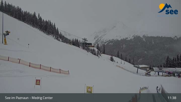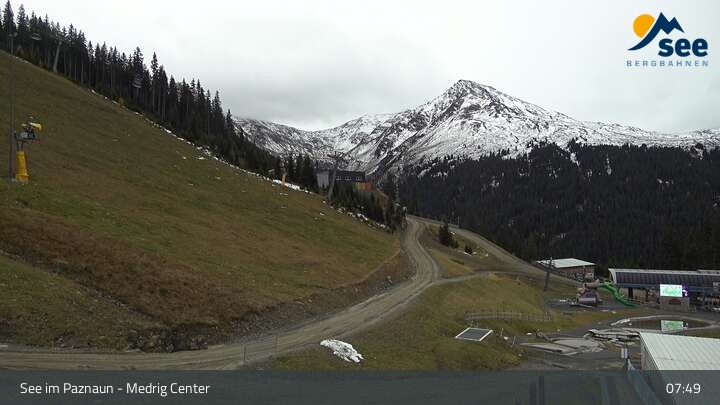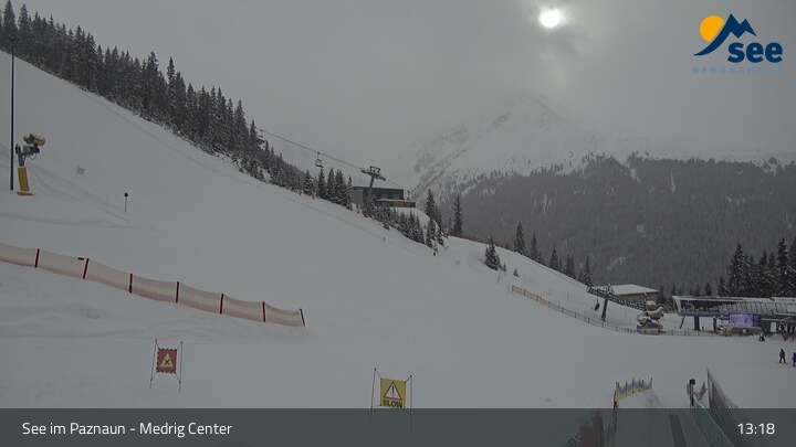 Die Webcam in See eröffnet den Blick vom Medrig Center auf rund 1.800 Metern auf die Bergstation der Medrigjoch-Gondelbahn.