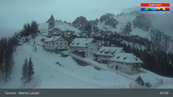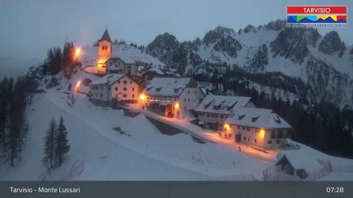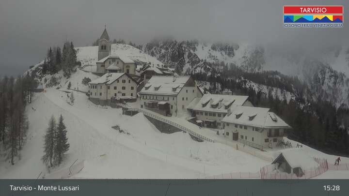Die Webcam zeigt die Bergwelt rund um den Monte di Lussari.
