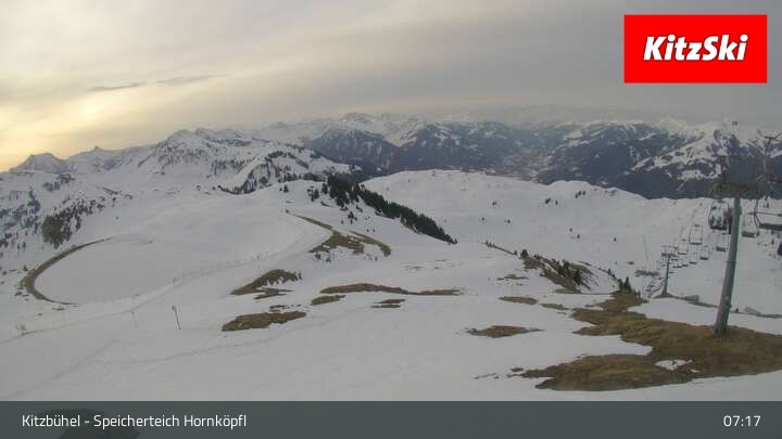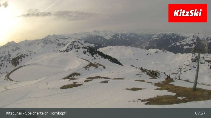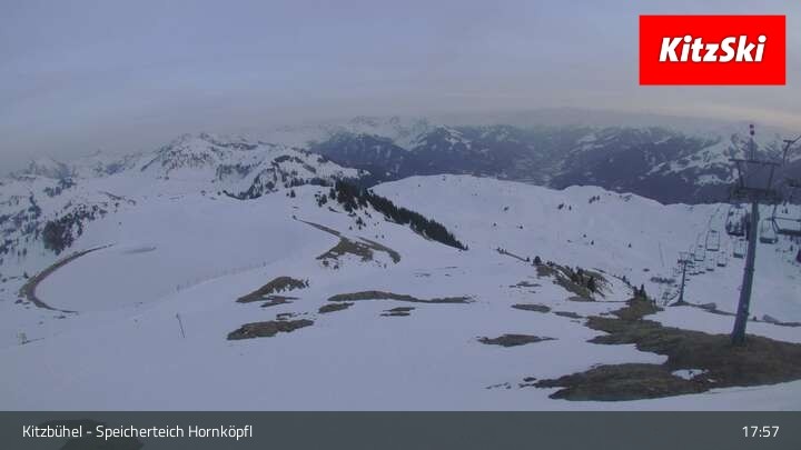 Die Webcam befindet sich auf rund 1.700 m Höhe und blickt auf den Speicherteich Hornköpfl sowie die Kitzbüheler Alpenwelt.