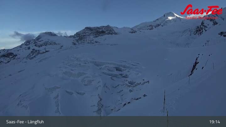 Panoramablick von der Bergstation der Längfluhbahn auf den Feegletscher.