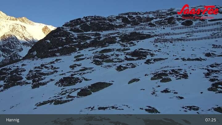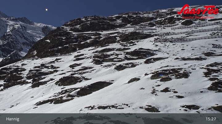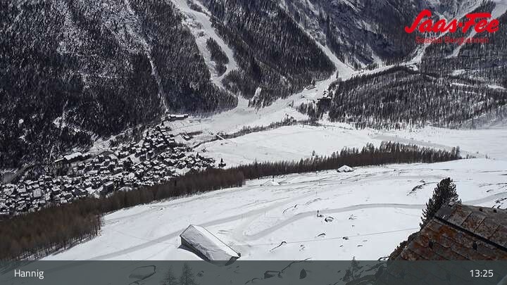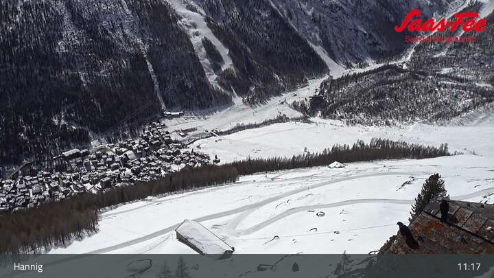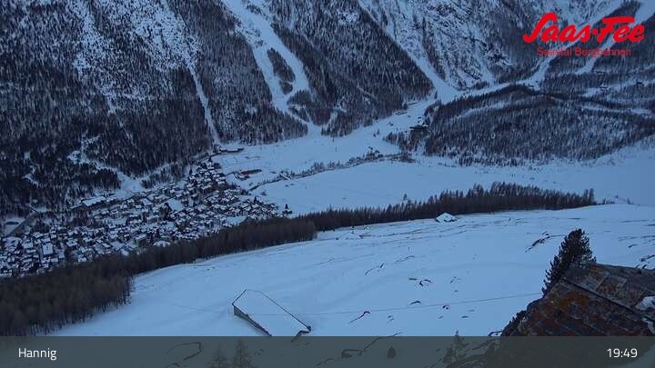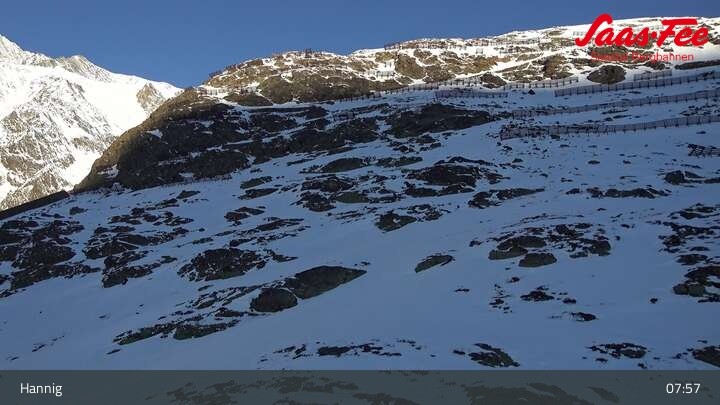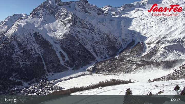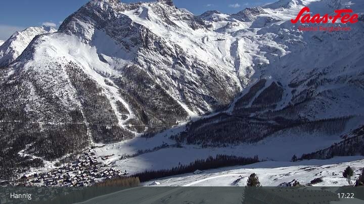 Die Webcam eröffnet einen schönen Ausblick von der Bergstation Hannig über Saas-Fee im Schweizer Kanton Wallis.