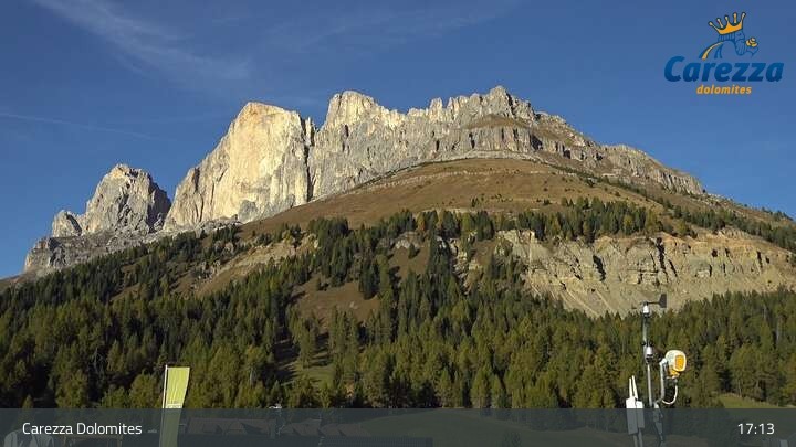 Hier siehst du die Talstation des Sessellifts Pra di Tori sowie die Berge von Carezza