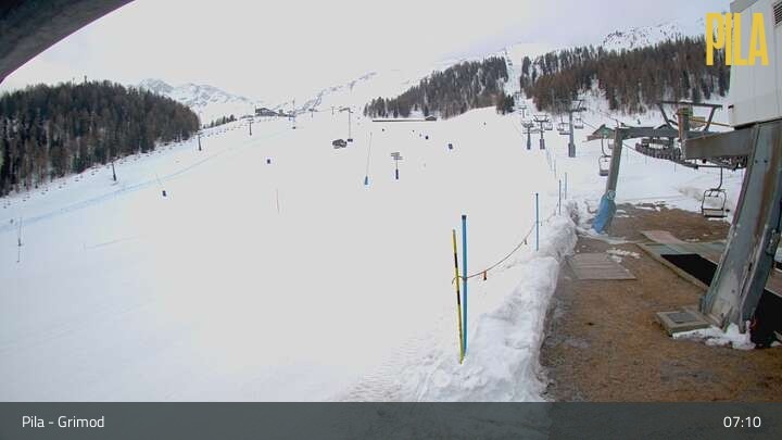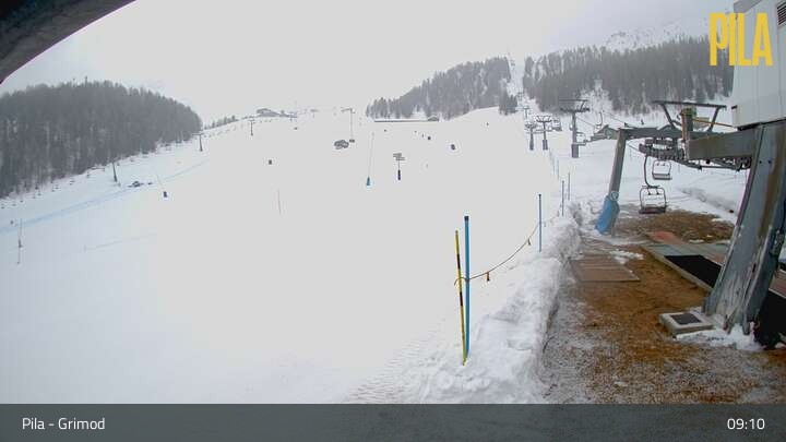 Die Webcam blickt auf den Sessellift Grimond in Pila.