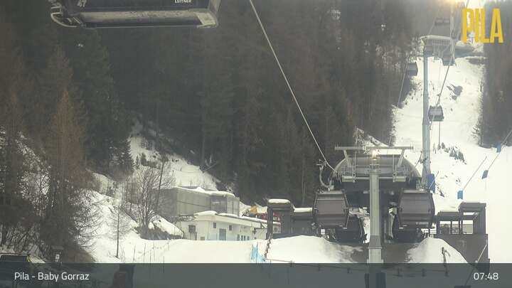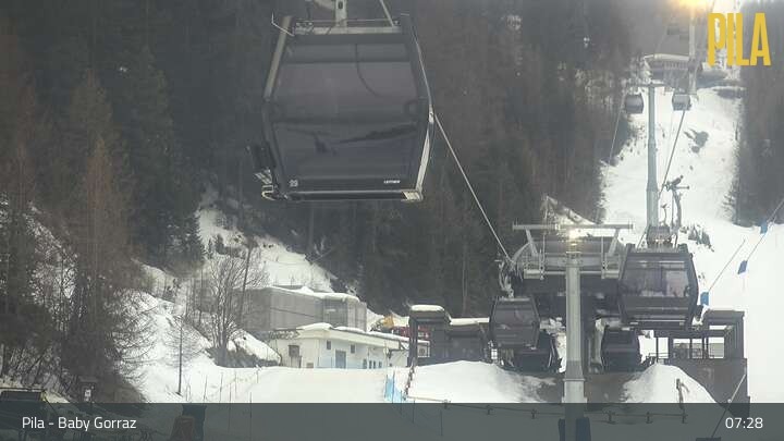 Die Webcam in Pila blickt vom Zauberteppich Baby Gorraz aus auf den Sessellift Gorraz und die umliegenden Berge.