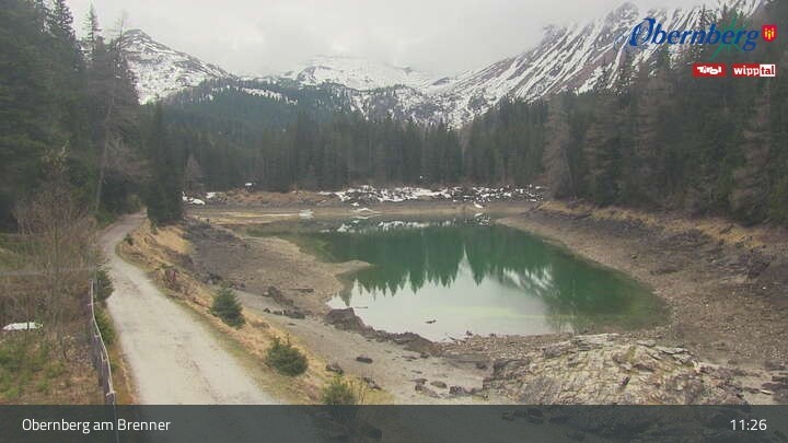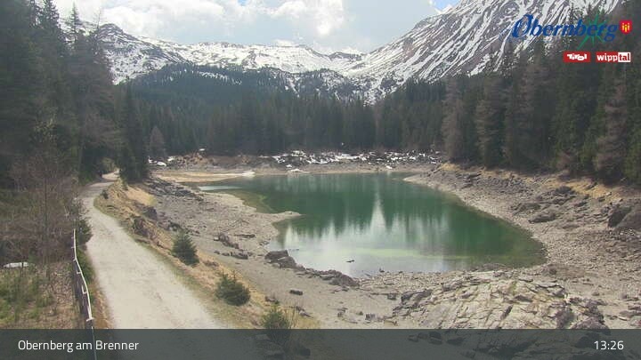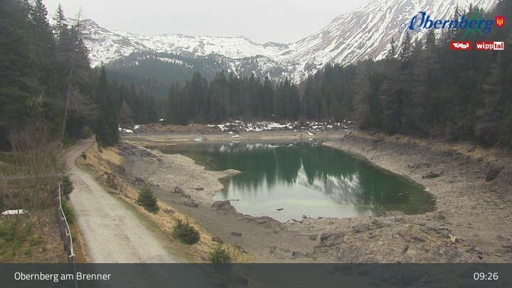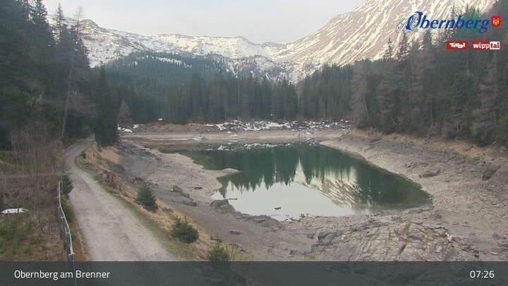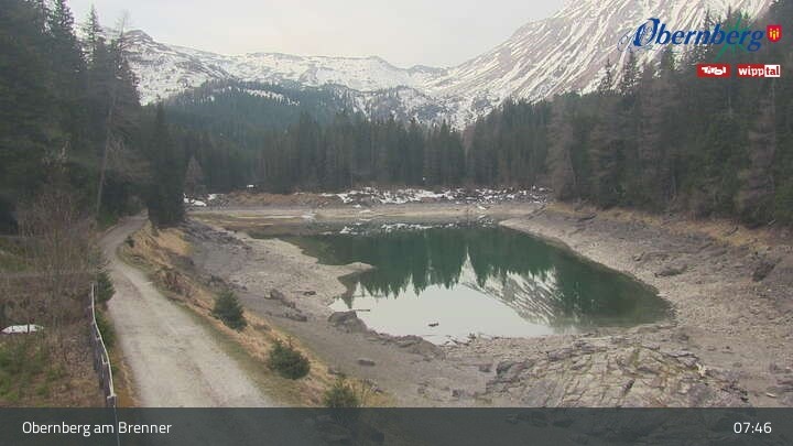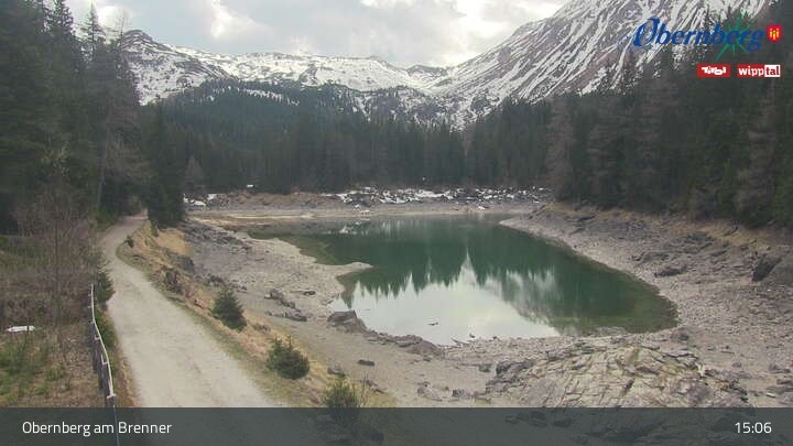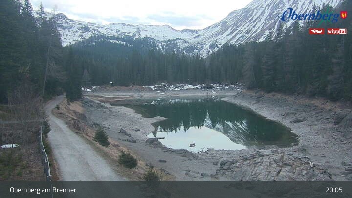 Die Kamera blickt auf den Obernberger See am Brenner.