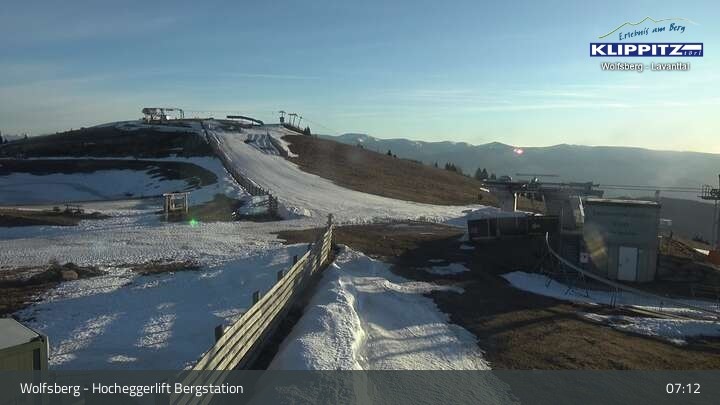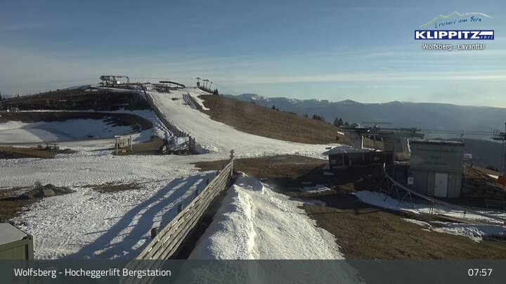 Hier siehst du den Ausblick von der Bergstation Klippitztörl über den Sessellift und die angrenzenden Pisten.