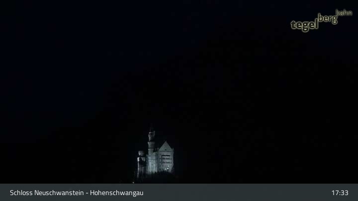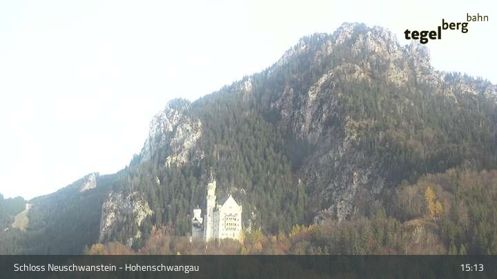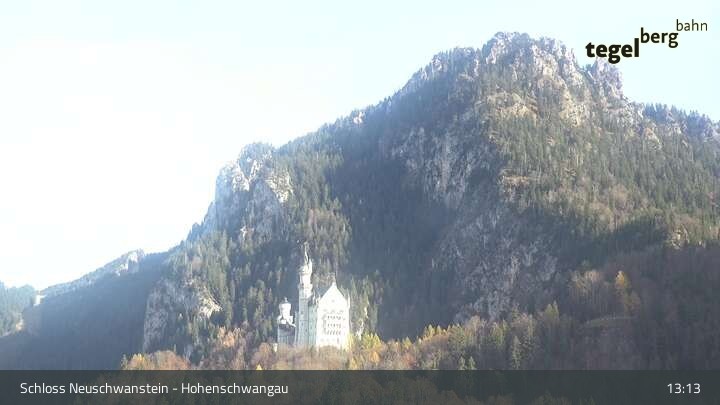 Die Kamera befindet sich am Schloss Hohenschwangau und schwenkt vom Schloss Neuschwanstein zum Museum der Bayerischen Könige.