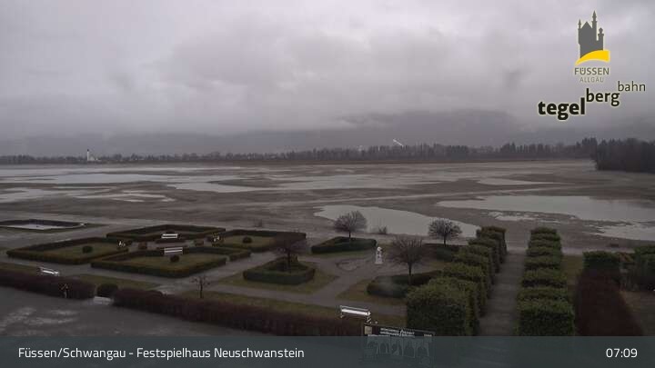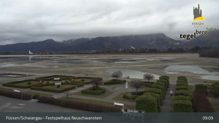 Die Webcam blickt auf den Garten von Ludwigs Festspielhaus in Füssen am Forggensee.