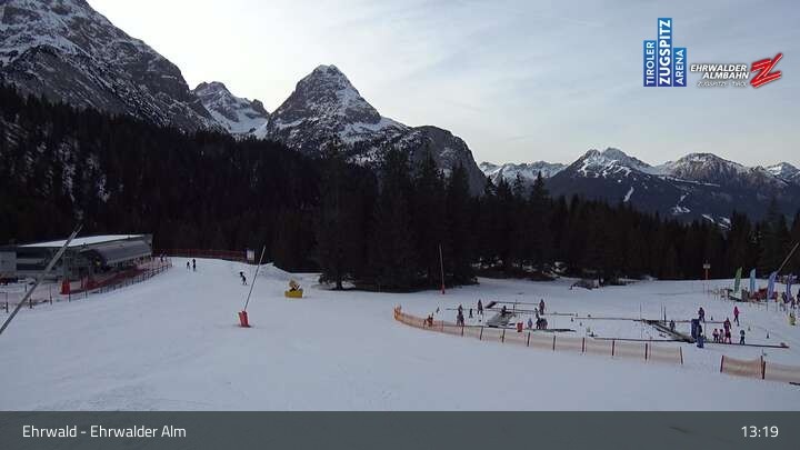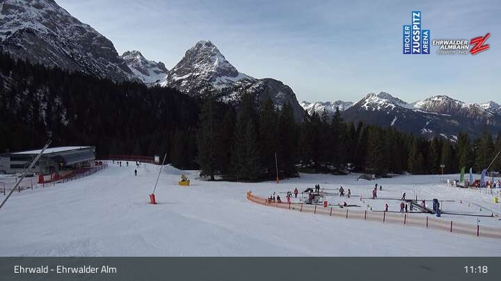 Webcam Sicht auf das Kinderland an der Ehrwalder Alm, 1,491 m