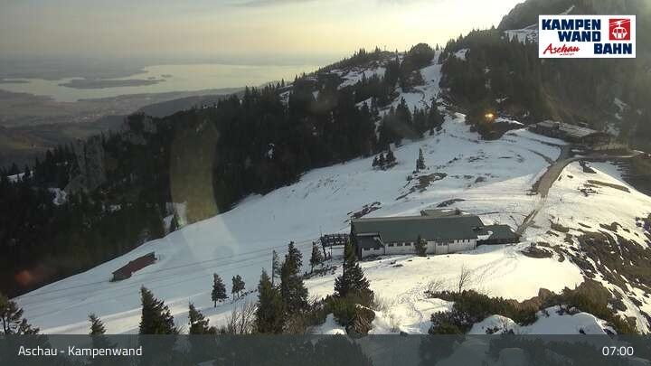 Die Webcam eröffnet dir einen Rundumblick von der Bergstation der Kampenwandbahn aus zur Sonnenalm und Roßleiten-Sessellift.