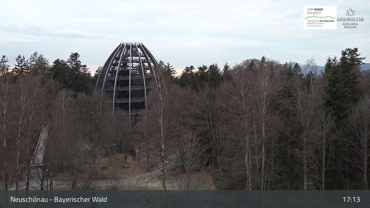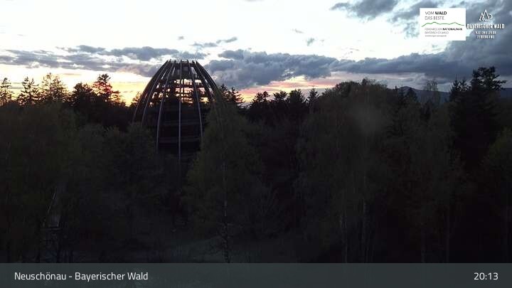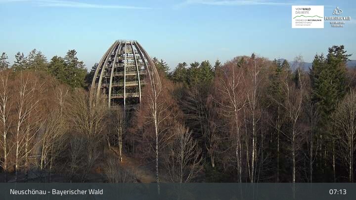 Die Kamera befindet sich in Neuschönau auf dem Dach des Besucherzentrums Hans-Eisenmann-Haus im Nationalparkzentrum Lusen im Bayerischen Wald. Zu sehen ist auch der über 40 Meter hohe Turm des Baumwipfelpfads.