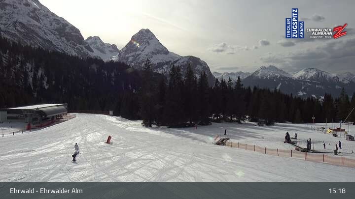 Webcam Sicht auf das Kinderland an der Ehrwalder Alm, 1,491 m