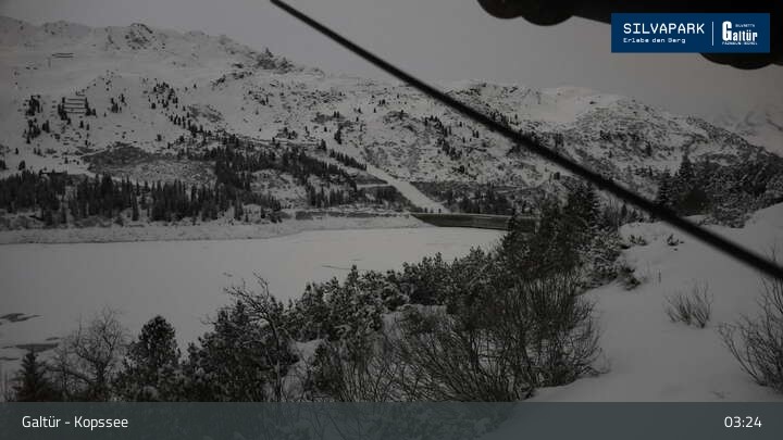 Hier siehst du den Stausee Kops in Galtür, der in den österreichischen Alpen im Bundesland Vorarlberg in der Silvretta-Gruppe liegt.