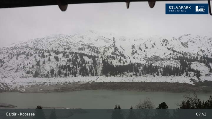 Hier siehst du den Stausee Kops in Galtür, der in den österreichischen Alpen im Bundesland Vorarlberg in der Silvretta-Gruppe liegt.