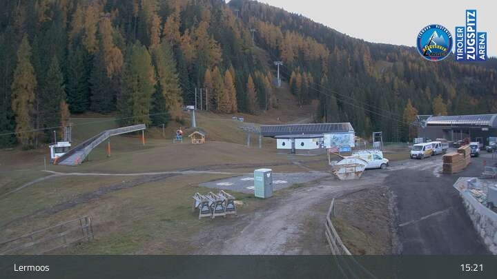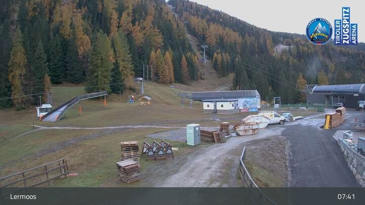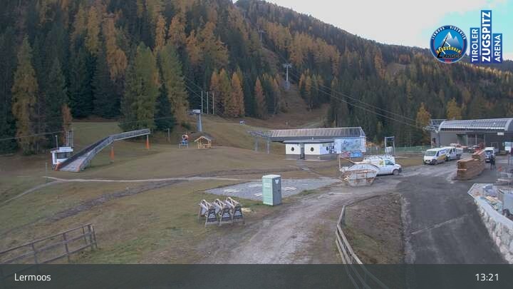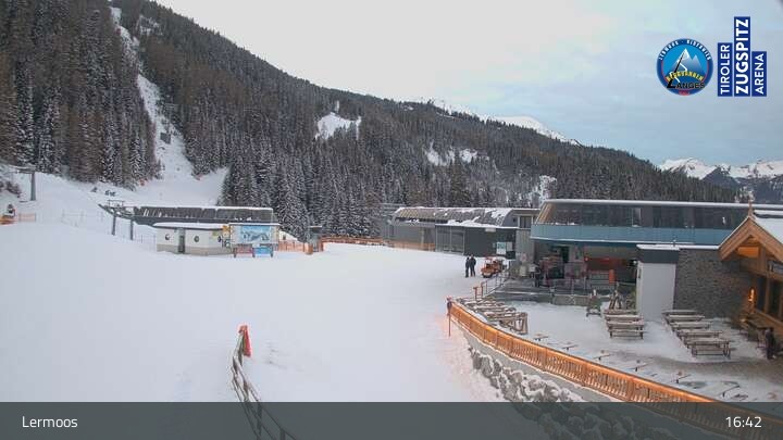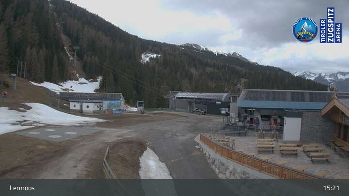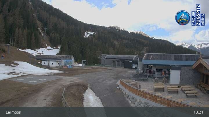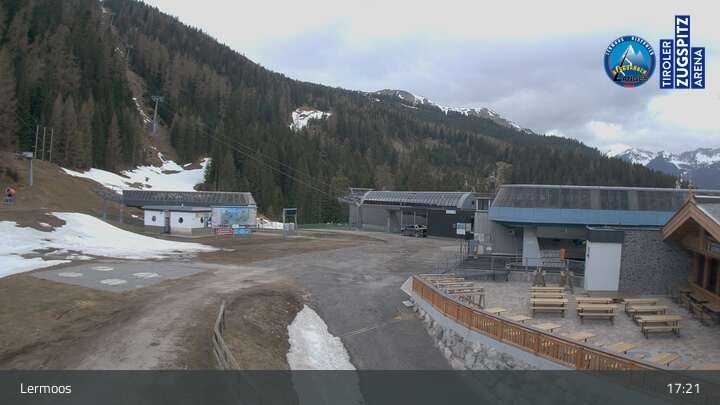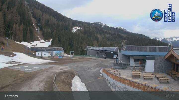 Die Webcam befindet sich an der Bergstation des Hochmoos Express in Lermoos und blickt auf die umliegenden Alpen.