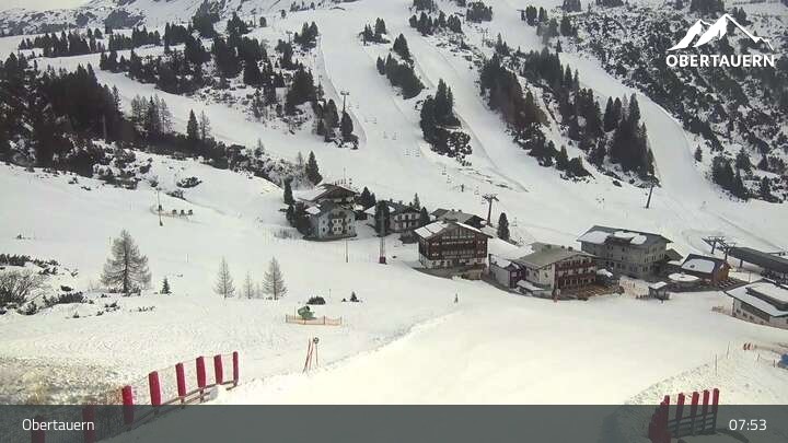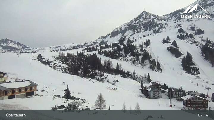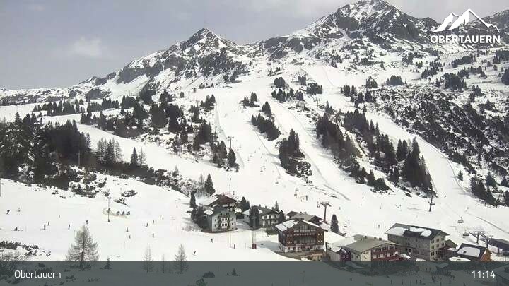 Blick auf die Pisten in Obertauern aus Sicht des Panorama Hotels