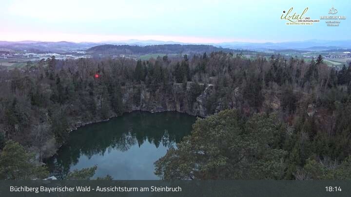 Webcam Büchlberg und Steinbruchsee vom Aussichtsturm, 527 m