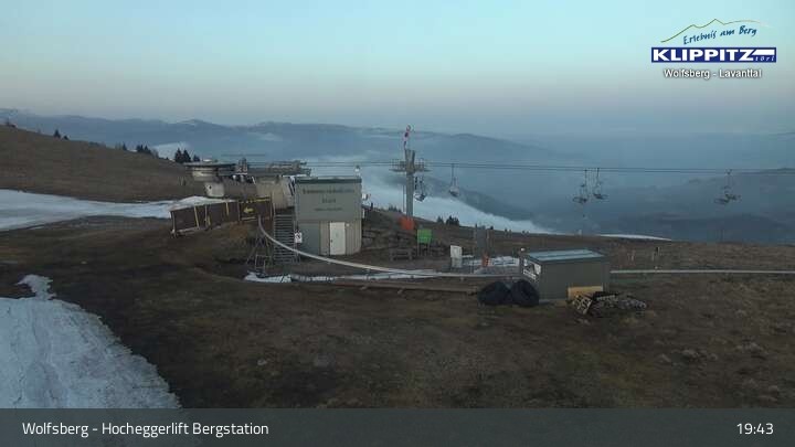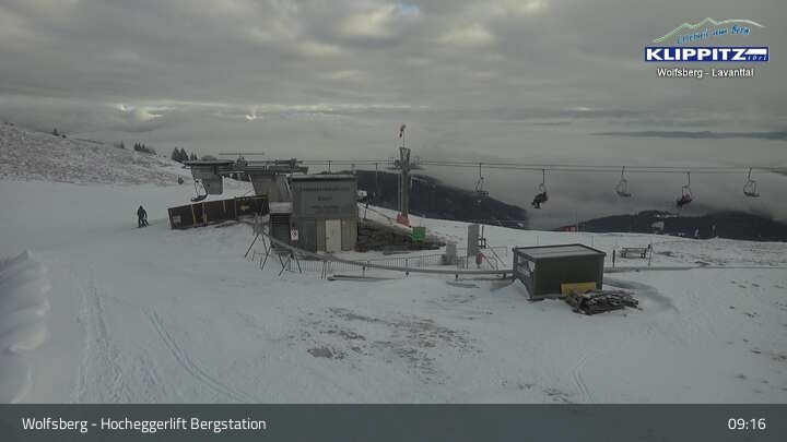Hier siehst du den Ausblick von der Bergstation Klippitztörl über den Sessellift und die angrenzenden Pisten.