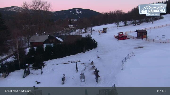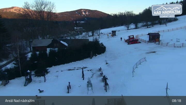Die Webcam zeigt die Skilifte im Areal Nad nádražím bei Železná Ruda nahe der deutschen Grenze.