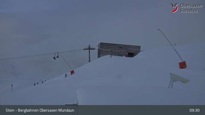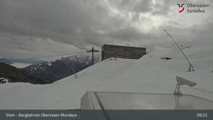 Die Webcam zeigt die Bergstation des Misanenga - Untermatt Lifts in Obersaxen in Graubünden. Die umliegende Alpenwelt ist ideal für Wanderungen und Mountainbiken geeignet.