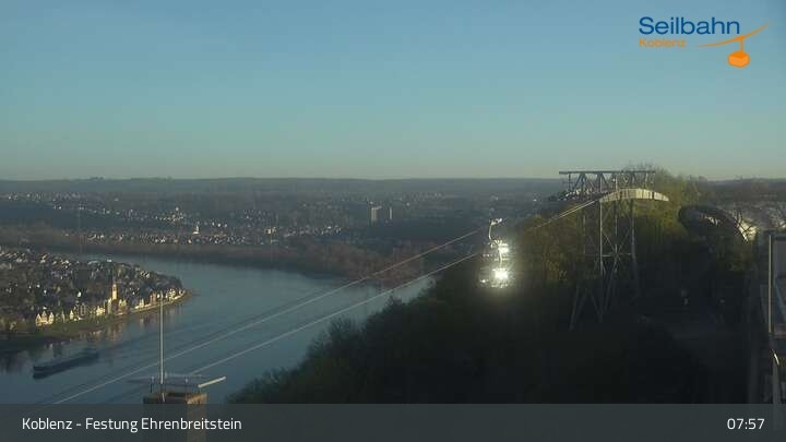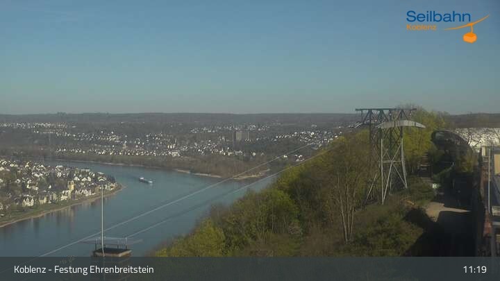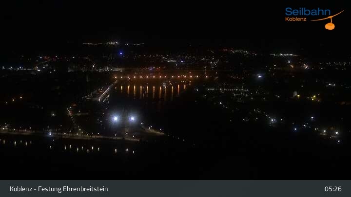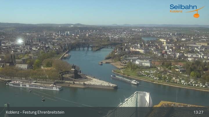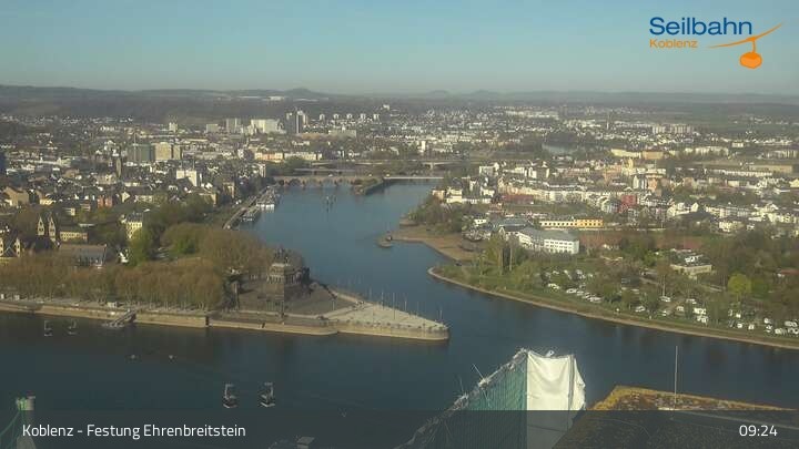 Webcam Koblenz: Blick von der Festung auf Seilbahn und Deutsches Eck, 160 m