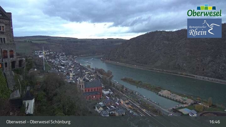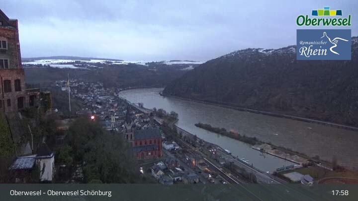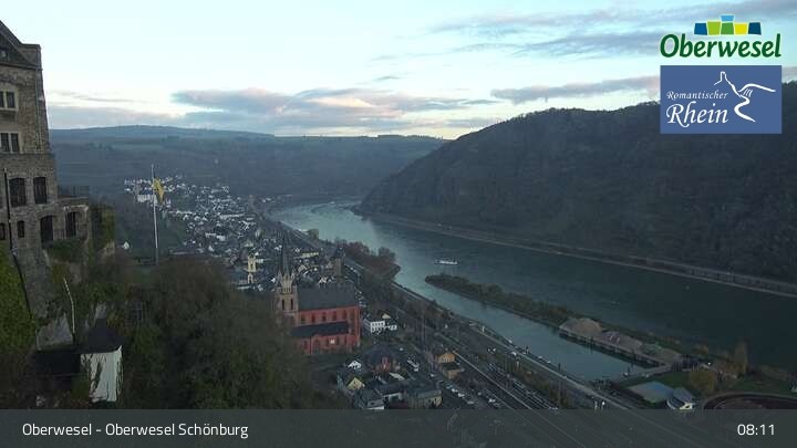 Die Webcam blickt über die Schönburg im rheinland-pfälzischen Oberwesel auf den Rhein. Die Höhenburg stammt aus dem 12. Jahrhundert.