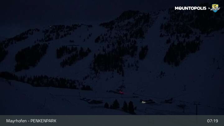 Hier blickst du auf den Vans Penken Park sowie den Sun-Jet Lift im Skigebiet Mayrhofen.
